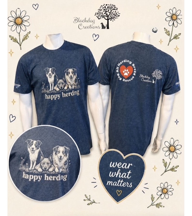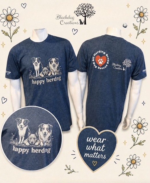 Custom, Limited Edition T-shirts for Happy Herding Fundraiser for All Herding Breed Rescue of IL. ALL PROCEEDS GO DIRECTLY TO ALL HERDING BREED RESCUE. (All Herding Breed Rescue of Illinois is a state licensed, non for profit, 501c3, rescue group.We are an all-volunteer organization that operates soley on donations.)