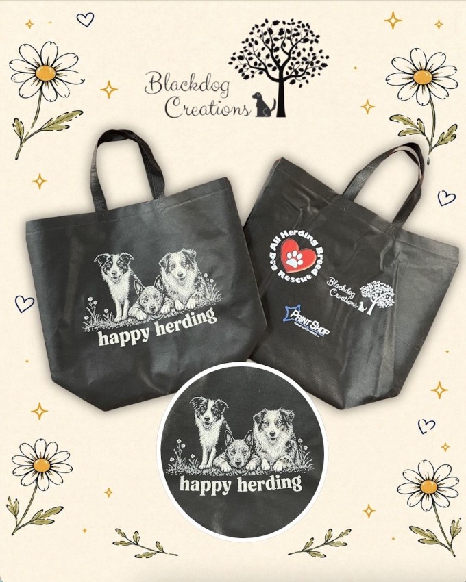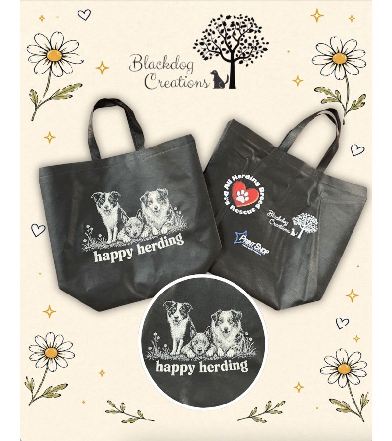 Custom, Limited Edition Totes for Happy Herding Fundraiser for All Herding Breed Rescue of IL. ALL PROCEEDS GO DIRECTLY TO ALL HERDING BREED RESCUE. (All Herding Breed Rescue of Illinois is a state licensed, non for profit, 501c3, rescue group.We are an all-volunteer organization that operates soley on donations.)