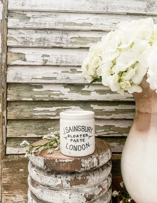 Antique English Early J. Sainsbury's Bloater Paste Ironstone Crock - Cleaner White