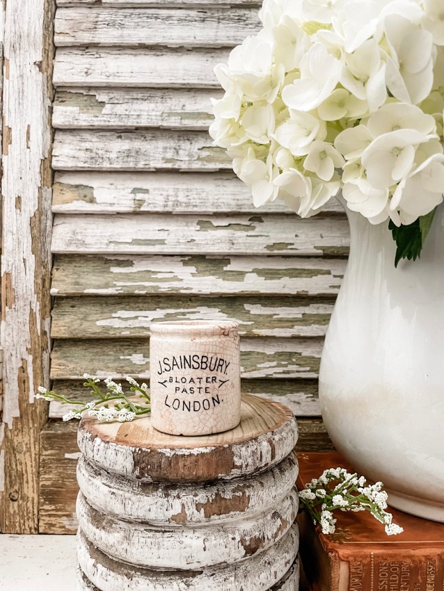 Antique English Early J. Sainsbury's Bloater Paste Ironstone Crock - Rare, Crazed, beautiful light staining