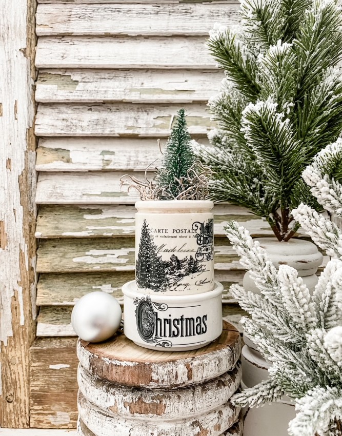 Antique English-Ironstone Christmas riser/pot stack of 2 - Holiday