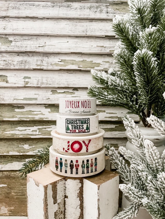 Antique English Ironstone riser w/ Christmas transfers - purchase one or purchase stack of 4.