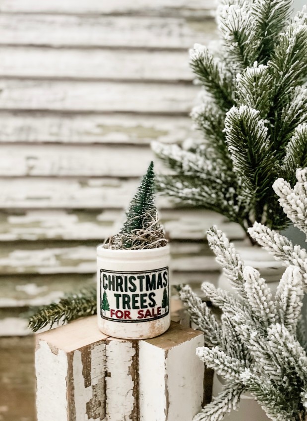 Antique Ironstone 4oz. Crock w/ Christmas Trees For Sale transfer - Holiday