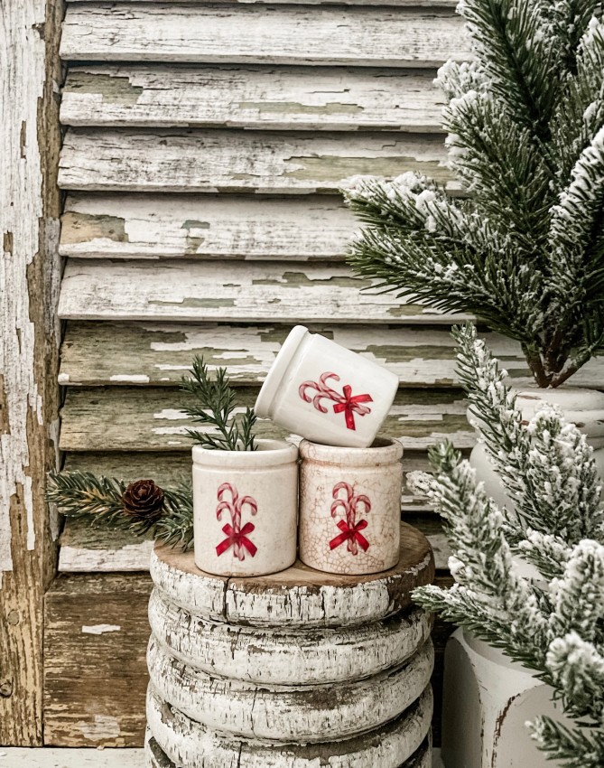 Antique Ironstone Crock w/ Candy Canes transfer - Holiday