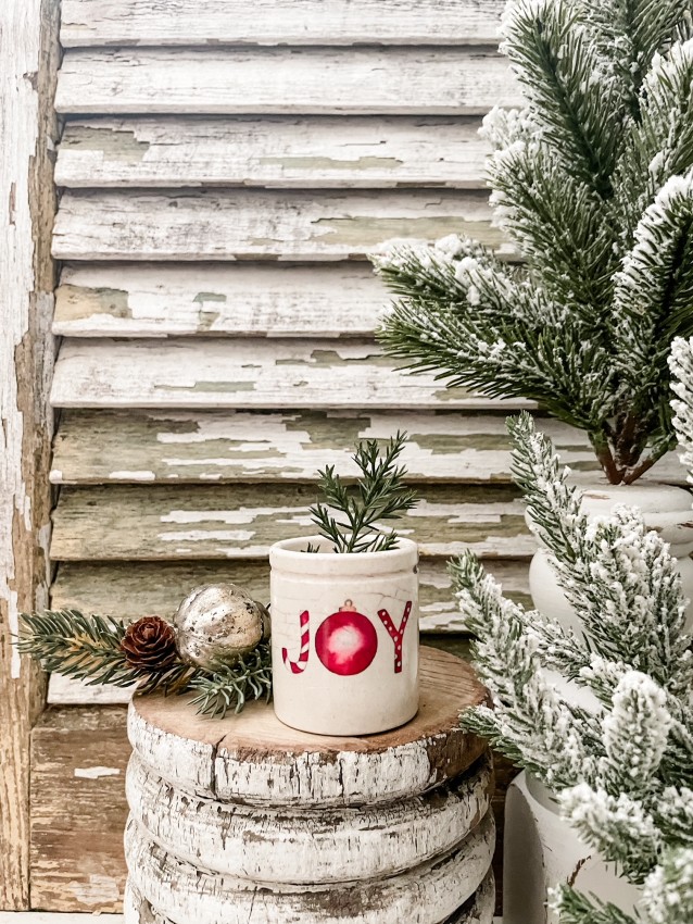 Antique Ironstone Crock w/ JOY transfer - Holiday