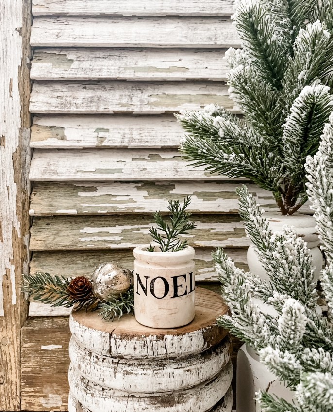 Antique Ironstone Crock w/ NOEL transfer - Holiday