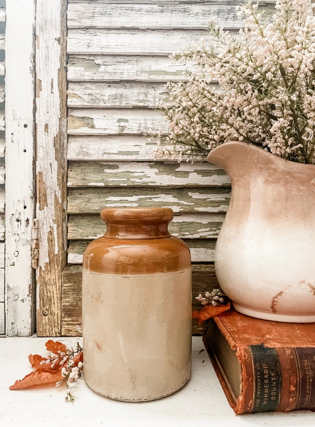 Antique Stoneware Shapely Two Tone crock - Large, 7.5T - Gorgeous coloring