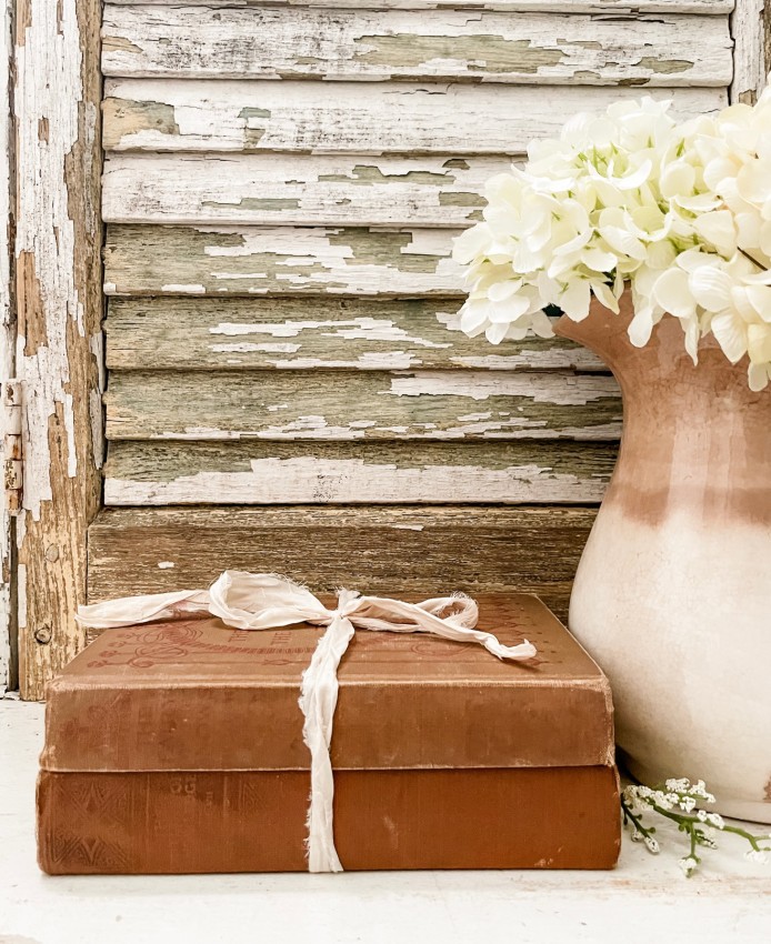 Antique/Vintage Leather Books - Leather Bound/Hardcover, Brown, Set of 2 w/ribbon