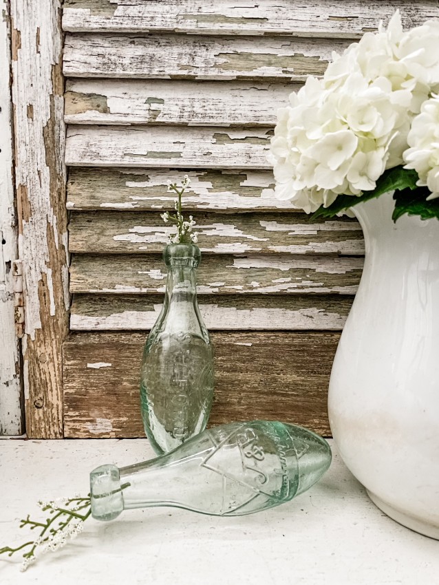 Antique, Torpedo Bottles, aqua glass. Perfect for your Vintage decor. Antique bottle collection. No cracks or chips.