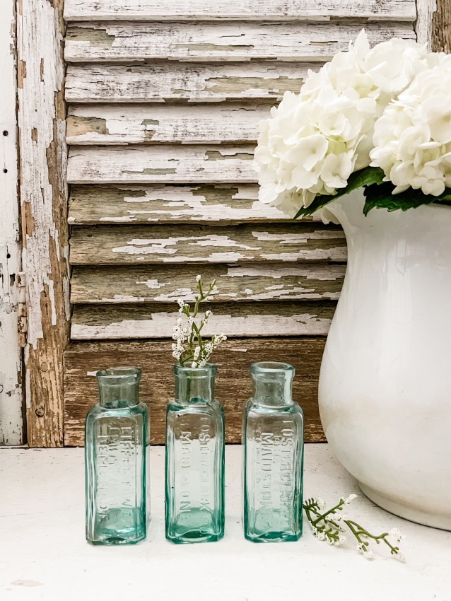 Perfect for your Vintage decor. Antique English Aqua bottles - Eiffel Tower, London.