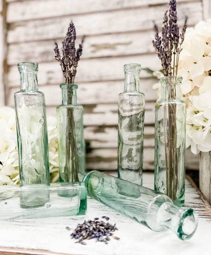 Antique English Cylinder Glass Bottles, Aqua Glass - set of 3 - LTD