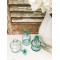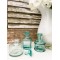 Set of Antique English Aqua Glass Ink Wells w/ Glass Toppers - Set of 3, Variety - LTD