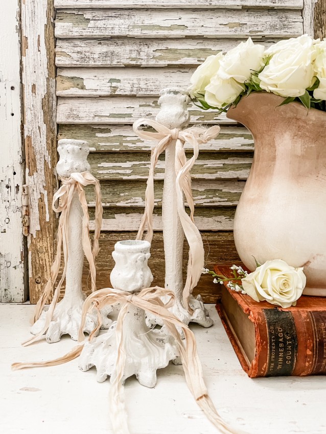 Vintage Chippy White Candlesticks - set of 3