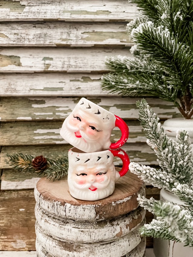 Vintage Mini Napcoware Santa Mugs - Set of 2 , Chippy Paint - Collectibles. Christmas Decor