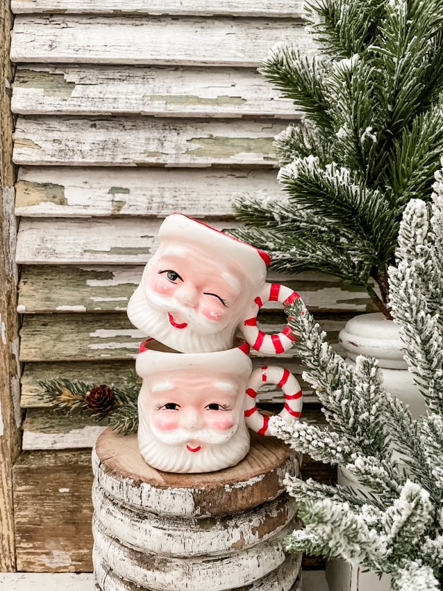 Vintage Rare Santa Mugs - Candy Cane Handle, Great Paint/Condition - Holiday