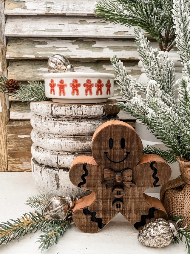 Antique English - Ironstone riser w/ Gingerbread decal transfer - Holiday
