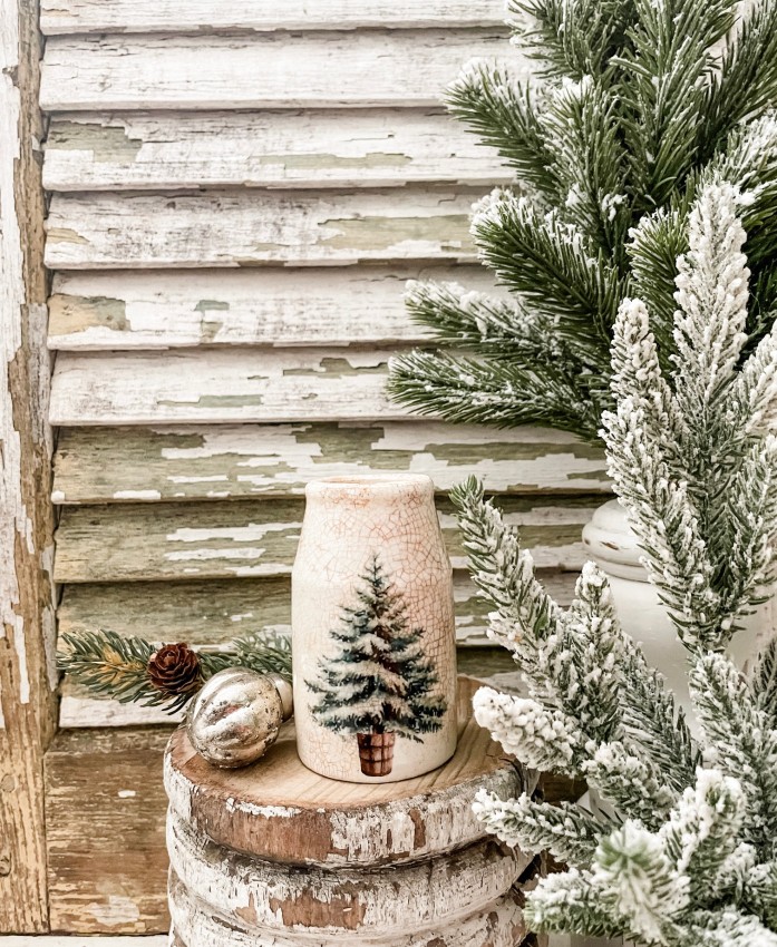 Antique Ironstone Churn Pot w/ Tree transfer - Holiday