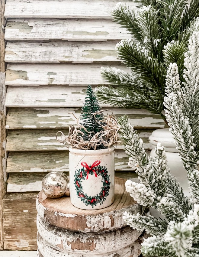 Antique Ironstone Crock w/ Wreath transfer - Holiday