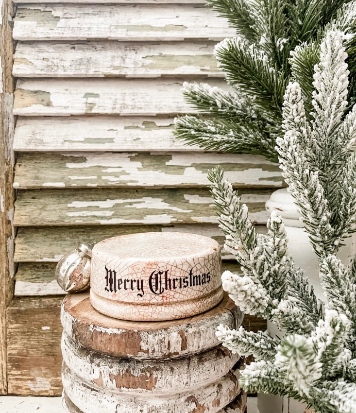 Antique Ironstone Lift w/ Merry Christmas transfer