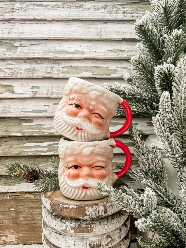Vintage Brinn's Santa Mugs - Stained/Crazed, Great Paint, Stamped - Holiday