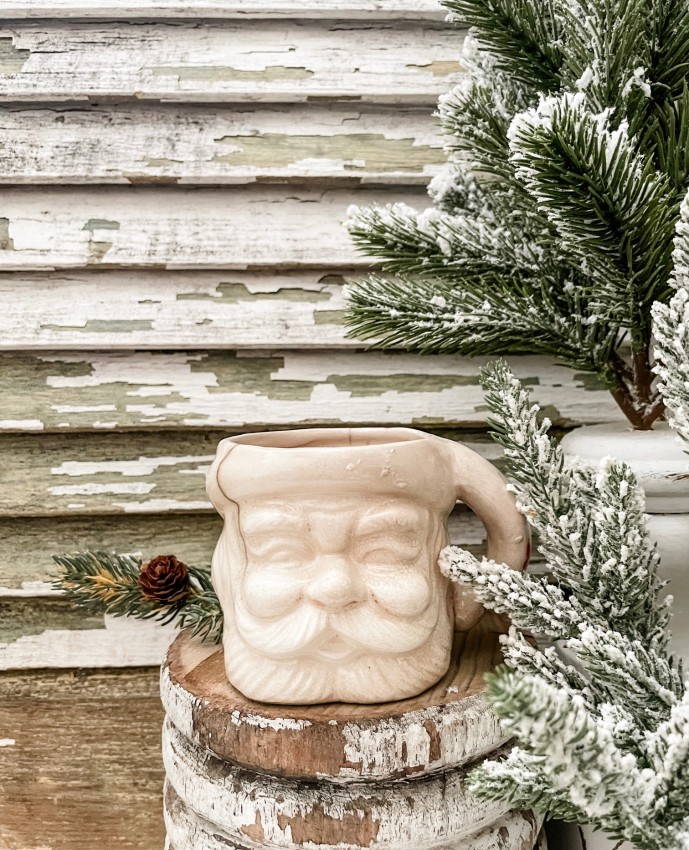 Vintage Stained White Commodore Santa Mug - Collectibles. - Stamped, Hairline crack, see photos. Christmas Decor
