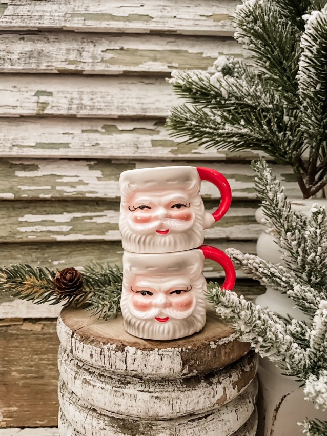 Vintage Mini Napcoware Santa Mugs - Set of 2 , Great Paint - Collectibles. Christmas Decor