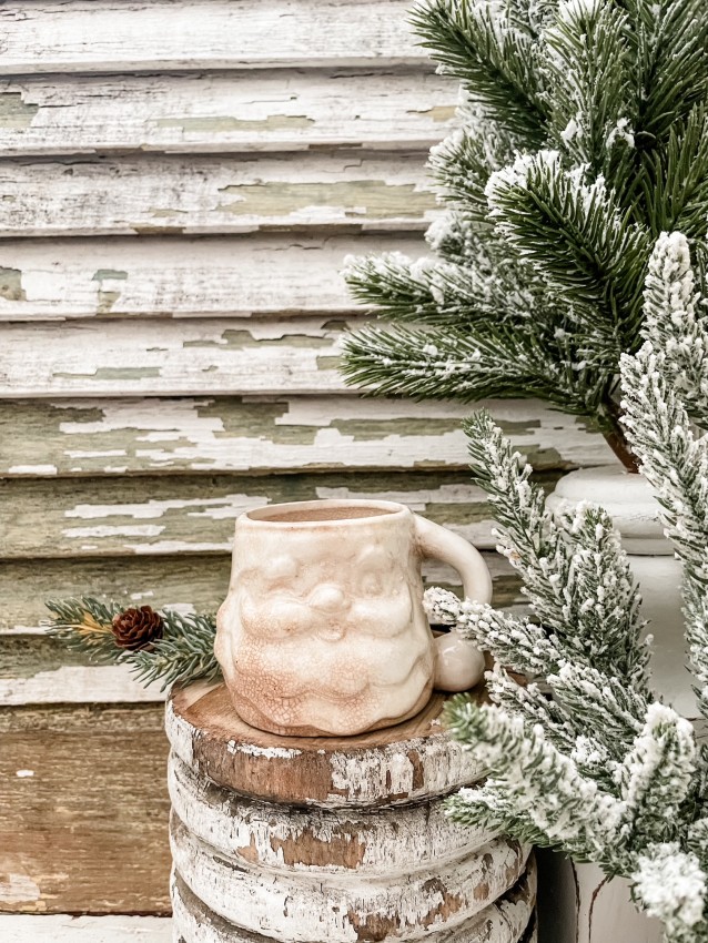 Vintage Rare White Holt Howard Santa Mug - Unique Staining, Crazing - Holiday Copy